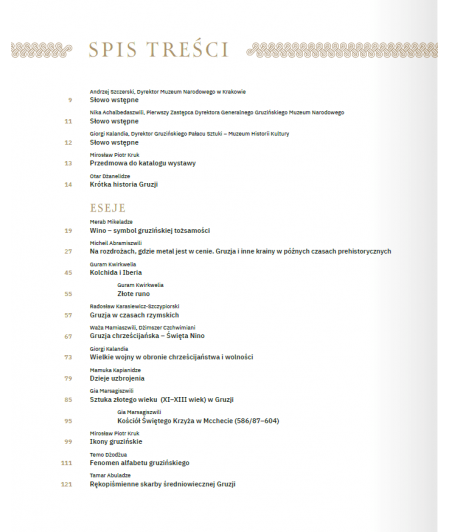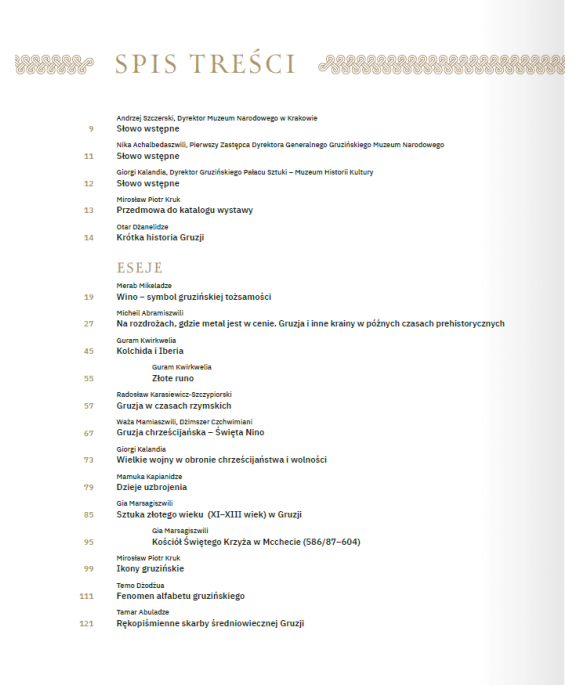 Wystawie towarzyszy katalog w pełni ukazujący jej bogactwo i różnorodność. Zawarte w nim eseje są interesującą prezentacją sztuki Gruzji, przybliżającą dzieje i kulturę tego kraju. Bogato ilustrowana część katalogowa prezentuje wszystkie eksponowane dzieła, a szczególnie ciekawe jest zwrócenie uwagi na prace polskich artystów działających w Gruzji, takich jak Henryk Hryniewski, Henryk Filipowicz, Jan Ciągliński, Zygmunt Waliszewski i inni.
